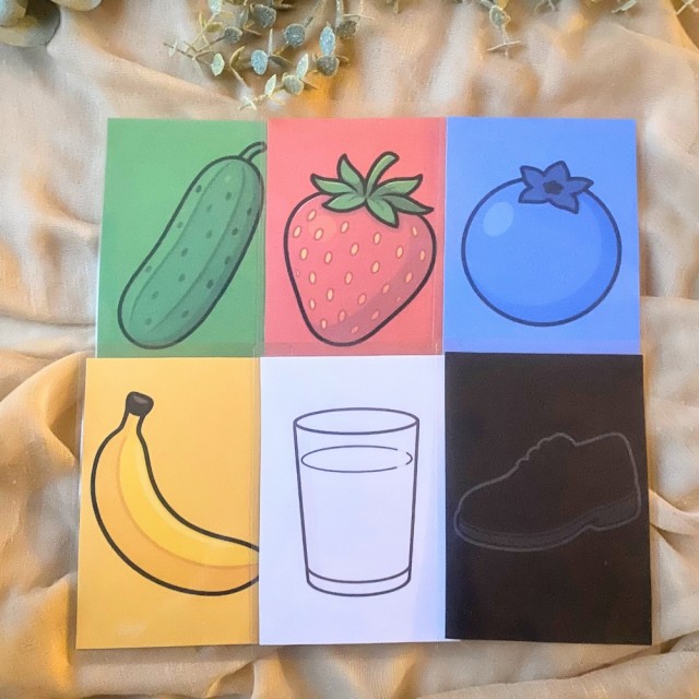 Kortsett «Gjenstand + farge» Fargerike kort i A6-format med illustrasjoner av kjente gjenstander på ensfargede bakgrunner – hjelper barnet å knytte abstrakte farger til virkelige ting. NOK129,00 inkl. mva. Kjøp Ønskeliste Del dette Produktinfo Produktanmeldelser (0) Innhold i settet: 12 Korter i A6-format (eksempler: jordbær – rød bakgrunn, banan – gul, agurk – grønn, blå ballong – lyseblå, grå mus – grå, appelsin – oransje osv.) Hvert kort har én tydelig og stor illustrasjon av en gjenstand – uten forstyrrende detaljer, slik at fokuset er på fargen og objektet Materiale: laminerte kort Kortene har ingen tekst – barnet fokuserer på objektet og fargen Designet spesielt for små barn – tydelige former, god kontrast og et klart mål: å gjøre abstrakte farger forståelige Fordeler og læringsutbytte: Hjelper barnet å lære farger og koble dem til konkrete gjenstander – et viktig skritt i språk- og begrepsutvikling Utvikler språket: barnet lærer å sette ord på både objekt og farge Trener kognitive ferdigheter: sortering, kategorisering, visuell diskriminering Stimulerer sansene med sterke farger og gjenkjennelige former Egner seg både hjemme og i barnehagen: som lek, læring eller observasjon For hvem: Barn i alderen 2–4 år (passer når barnet begynner å gjenkjenne og navngi farger og ting) Foreldre og pedagoger som vil styrke barnets språk, ordforråd og forståelse av farger Perfekt for barn som allerede kjenner noen basisgjenstander og er klare for neste nivå: «farge + objekt» Brukstips: Vis kortet og si navnet på objektet og fargen: «Se, et jordbær. Det er rødt!» Be barnet finne noe i rommet med samme farge eller samme type objekt Bruk kortene som en lek: legg kortet på bordet og la barnet finne en leke i samme farge Gjenta regelmessig – repetisjon er nøkkelen til læring Skriv en produktanmeldelse og del dine erfaringer med dette produktet med andre kunder. Email Navn Din vurdering? 1 star 2 star 3 star 4 star 5 star 6 star Oppgi en tittel for anmeldelsen din Skriv inn produktanmeldelsen i feltet under